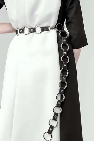 Siyah Kadın Kemer Zincir Detaylı Suni Deri Vücut Aksesuarı - APFT52