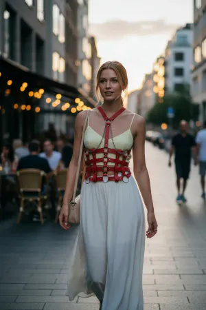 Kırmızı Kadın Kemer Korse Yapılı Zincir Detaylı - APFT1072