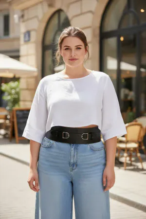 Büyük Beden Siyah Kadın Kemer Geniş Korse Model Çift Tokalı - APFT875