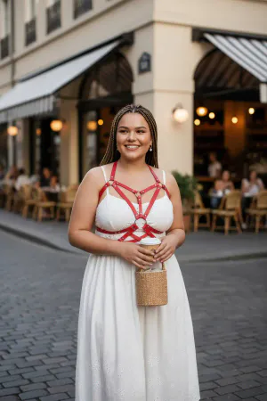 Büyük Beden Kırmızı Kadın Kemer Harness Vücut Aksesuarı İddialı Kombin Tamamlayıcı - APFT107