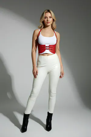 Kırmızı Renk Kalın Kadın Kemeri, Elbise Kemeri, Şık Deri Kemer, Deri Kemer Harness - APFT605