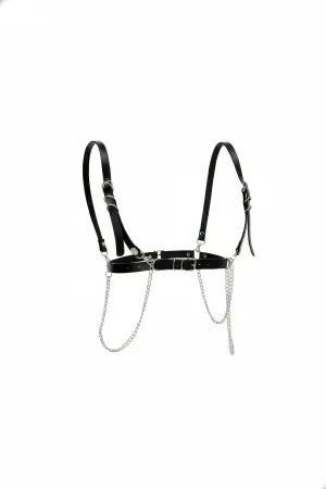 Siyah Kadın Kemer Deri Zincir Detaylı Vücut Aksesuarı - APFT1176