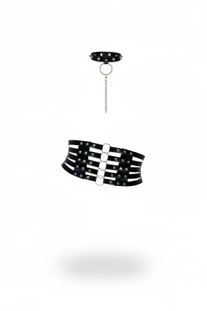 Zincirli Siyah Deri Bel Kemeri - APFT763