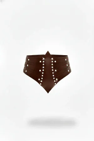 Kahverengi Kadın Kemer Geniş Zımba Detaylı Korse Tipi - APFT905