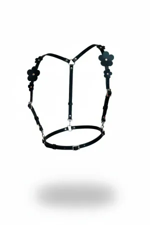 Siyah Kadın Kemer Çiçek Detaylı Deri Omuz Bağlamalı - APFT906