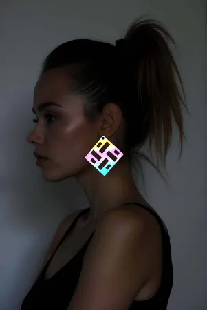 Rainbow Reflektörlü Kare Küpe, Şık Lazer Kesim Küpe - APBJ012