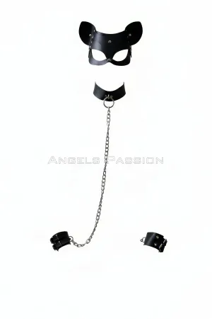 Deri Kedi Maskesi - Deri Maske - Seksi Maske - APFT558
