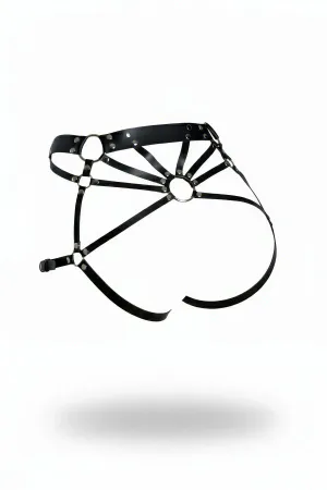 Siyah Tanga - Külot Ayarlanabilir Deri Jartiyer - APFT1209