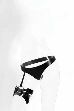 Siyah Tanga - Külot Deri Bantlı Halka Detaylı Kalça Aksesuarı - APFT1048