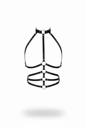 Siyah Harness Takım Deri Metal Halka Detaylı Vücut Aksesuarı - APFT540