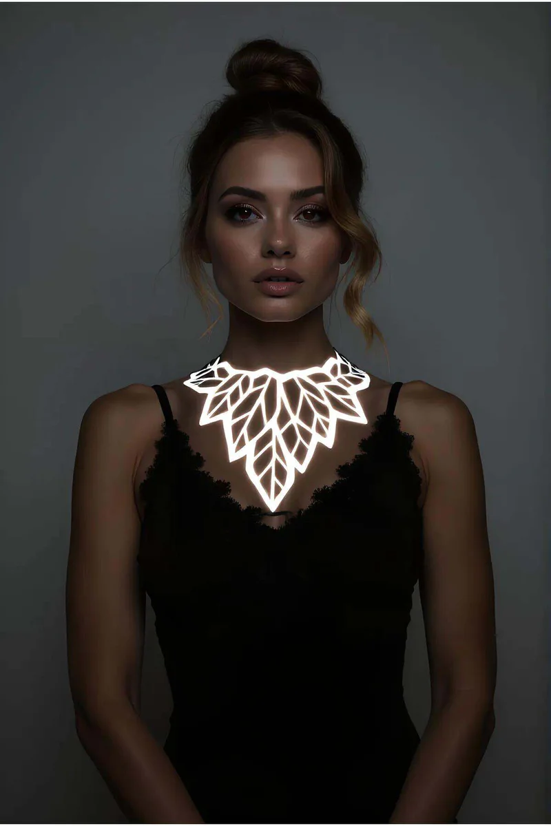 Ana Sayfa/Aksesuar/Choker/Beyaz Reflektörlü Büyük Yaprak Choker Kolye, Tarz Lazer Kesim Kolye - APFT1417