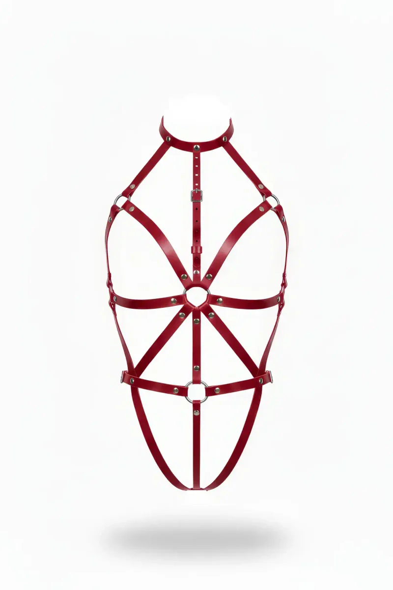 Ana Sayfa/Kadın Harness/Body Harness/Bordo Body Harness Deri Yüksek Yaka O-Halkalı Vücut Aksesuarı - APFT243