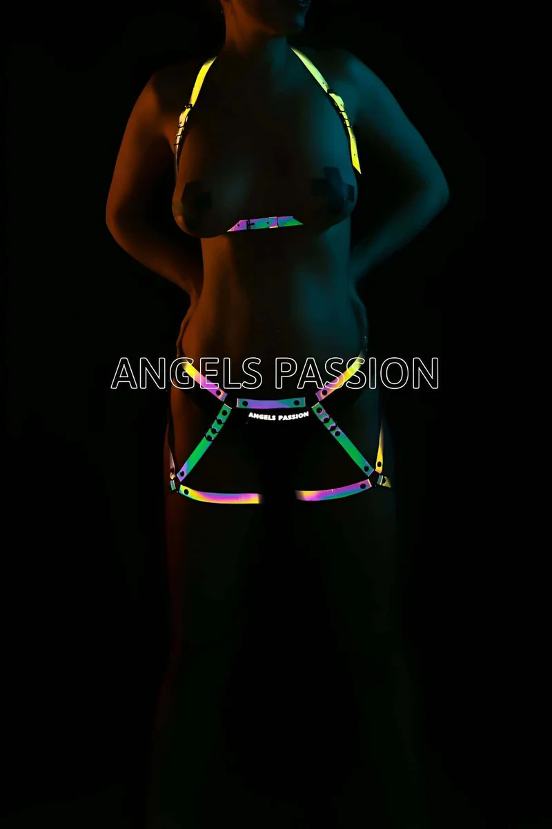 Dünya’da ilk kez Angels Passion markası tarafından üretilen Erotik Giyim Reflektörlü Harness Takım isimli Reflektörlü Harness ürünümüz, ışık vurduğunda parlayan özel üretim reflektörlü malzemeden hazırlanmıştır.