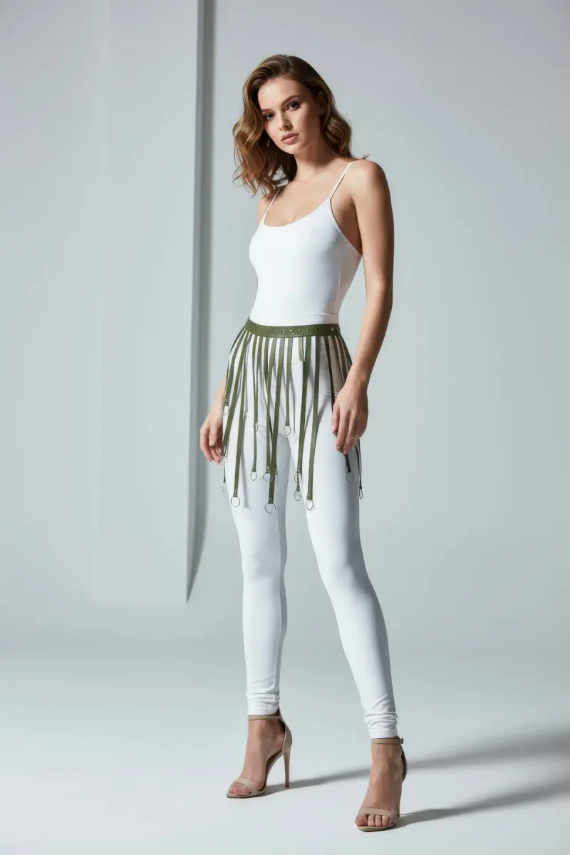 Haki Etek Suni Deri Etek Halka Detaylı Etek Mini Etek - APFT579