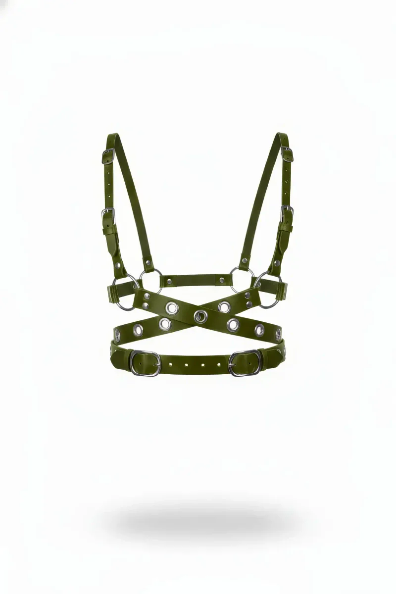Haki Kadın Kemer Çoklu Tokalı Çapraz Vücut Aksesuarı - APFT890
