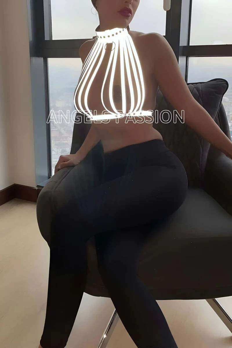 Ana Sayfa/Reflektörlü Harness/Karanlıkta Parlayan Beyaz Reflektörlü Seksi Büstiyer Sütyen Takım - APFT551