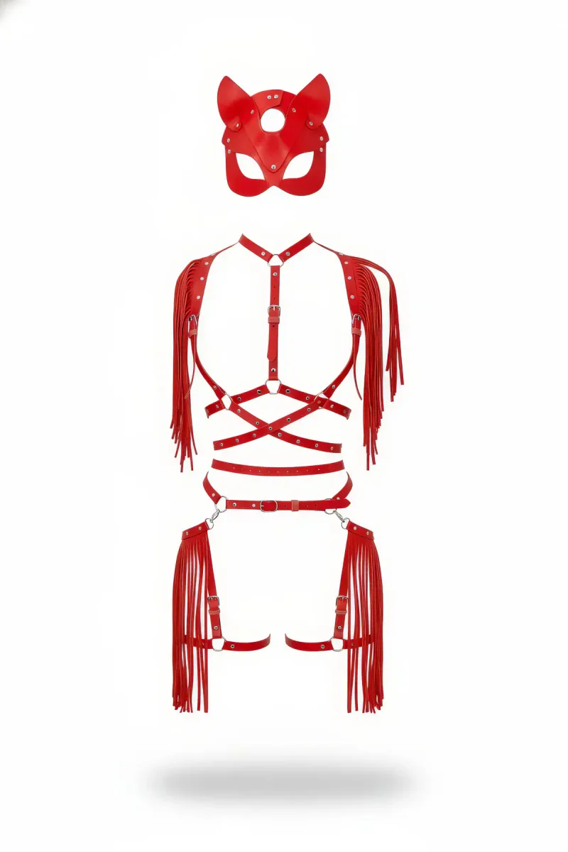 Kırmızı Etek Deri Püsküllü Vücut Aksesuarı Seti - APFT892