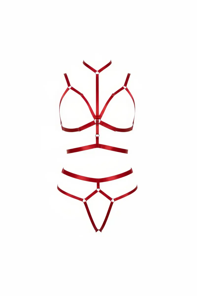 Kırmızı Harness Takım Yüksek Yaka O Halka Detaylı Vücut Aksesuarı - APFT362