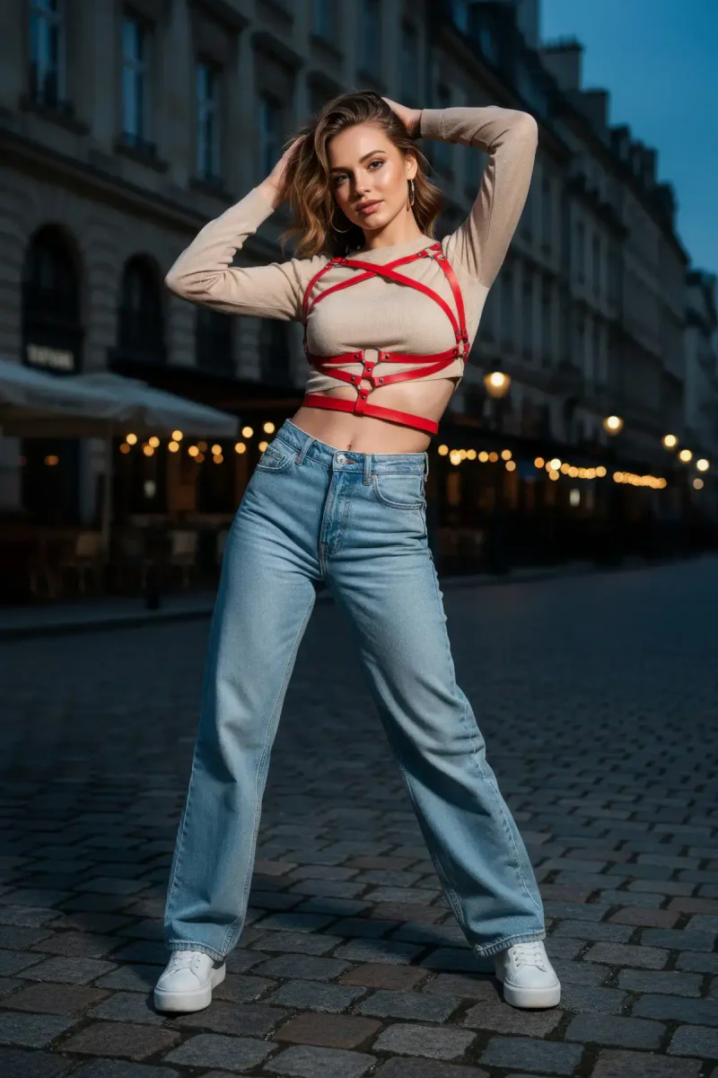 Kırmızı Kadın Kemer Deri Çapraz Bantlı Vücut Kemer - APFT991