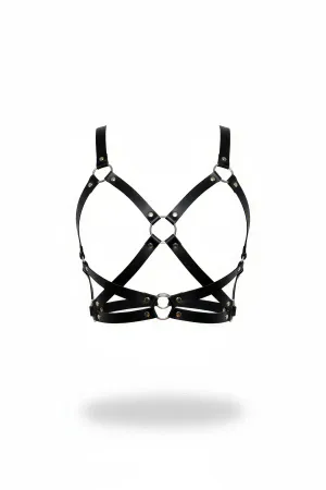 Siyah Kadın Kemer Suni Deri Çapraz Halka Detaylı Vücut Aksesuarı - APFT816