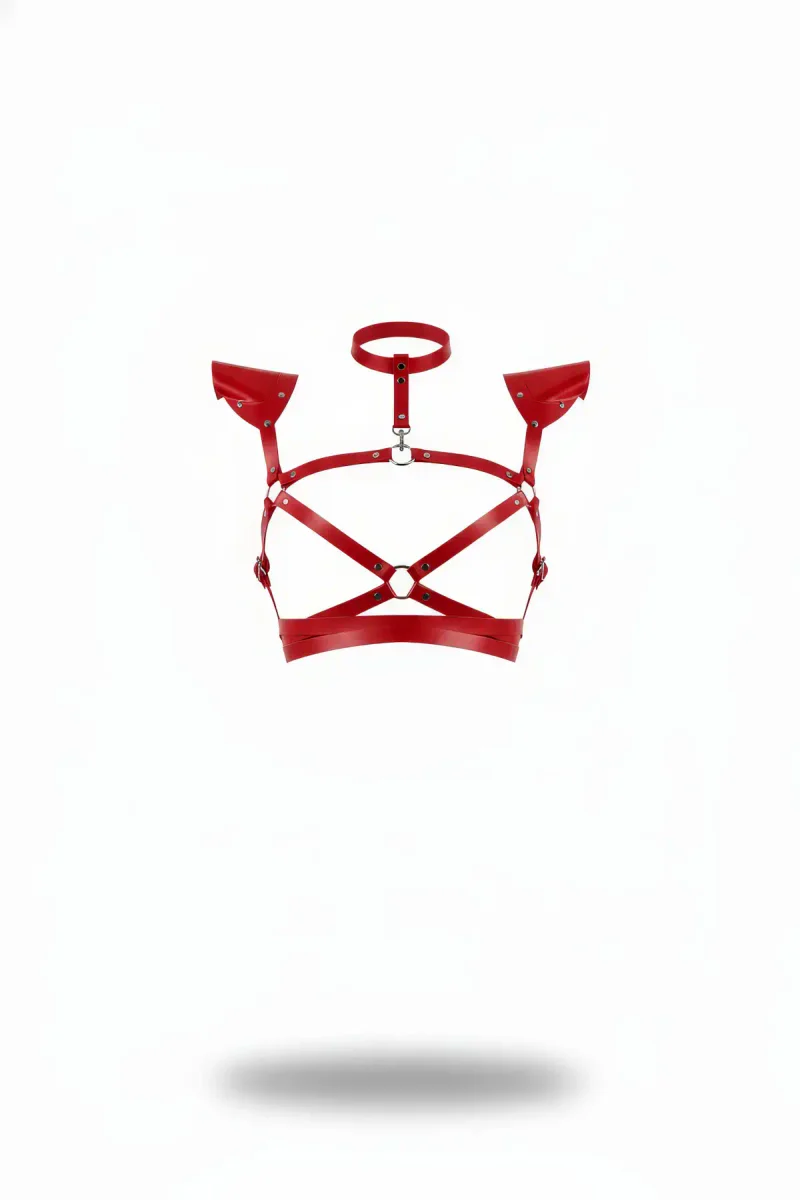 Kırmızı Kadın Kemer Deri Omuz Detaylı Vücut Bağlaması - APFT996