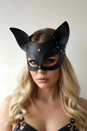Kırmızı Maske Kedi Kulaklı Deri Zımba Detaylı Kostüm - APFT782