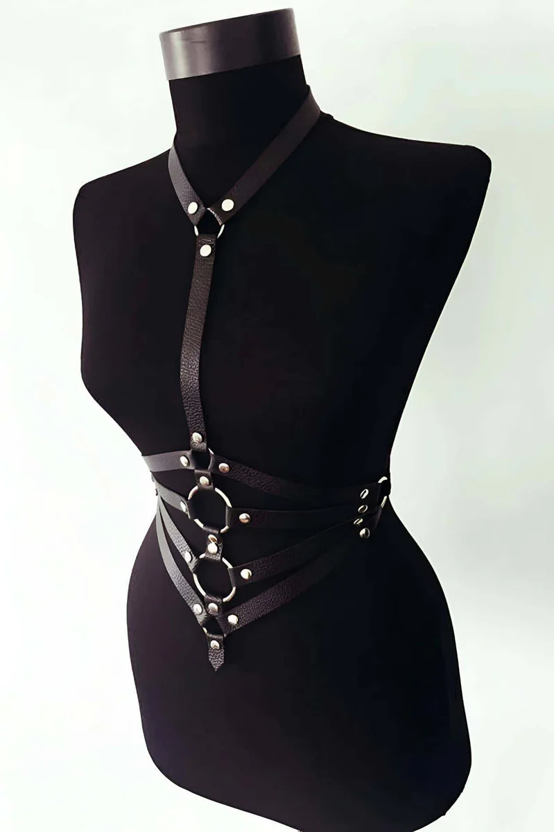 Siyah Göğüs Harness Suni Deri Metal Halka Detaylı - APFT564