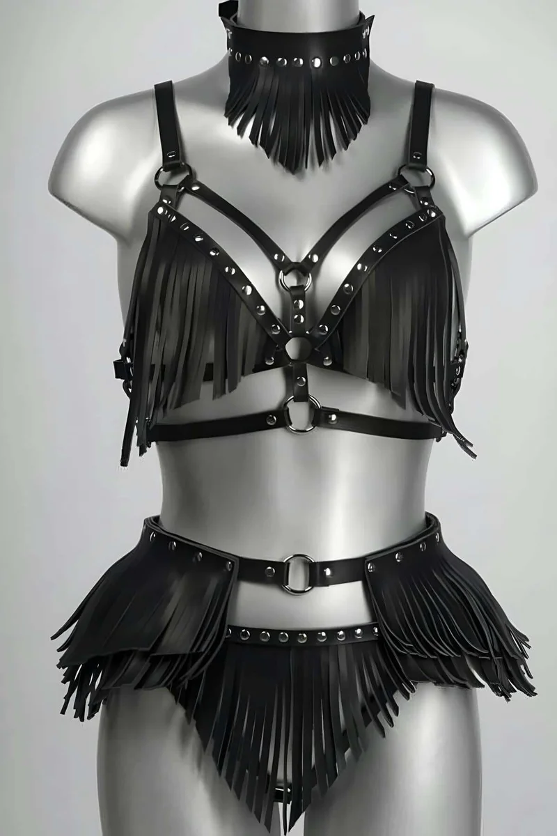 Paket İçeriği : 4 Parça (Choker, Üst Harness, Bel ve Külot)