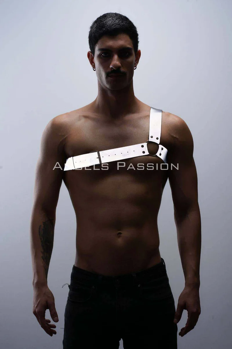 Reflektörlü (Karanlıkta Parlayan) Tek Omuz Erkek Göğüs Harness, Clubwear - APFTM32