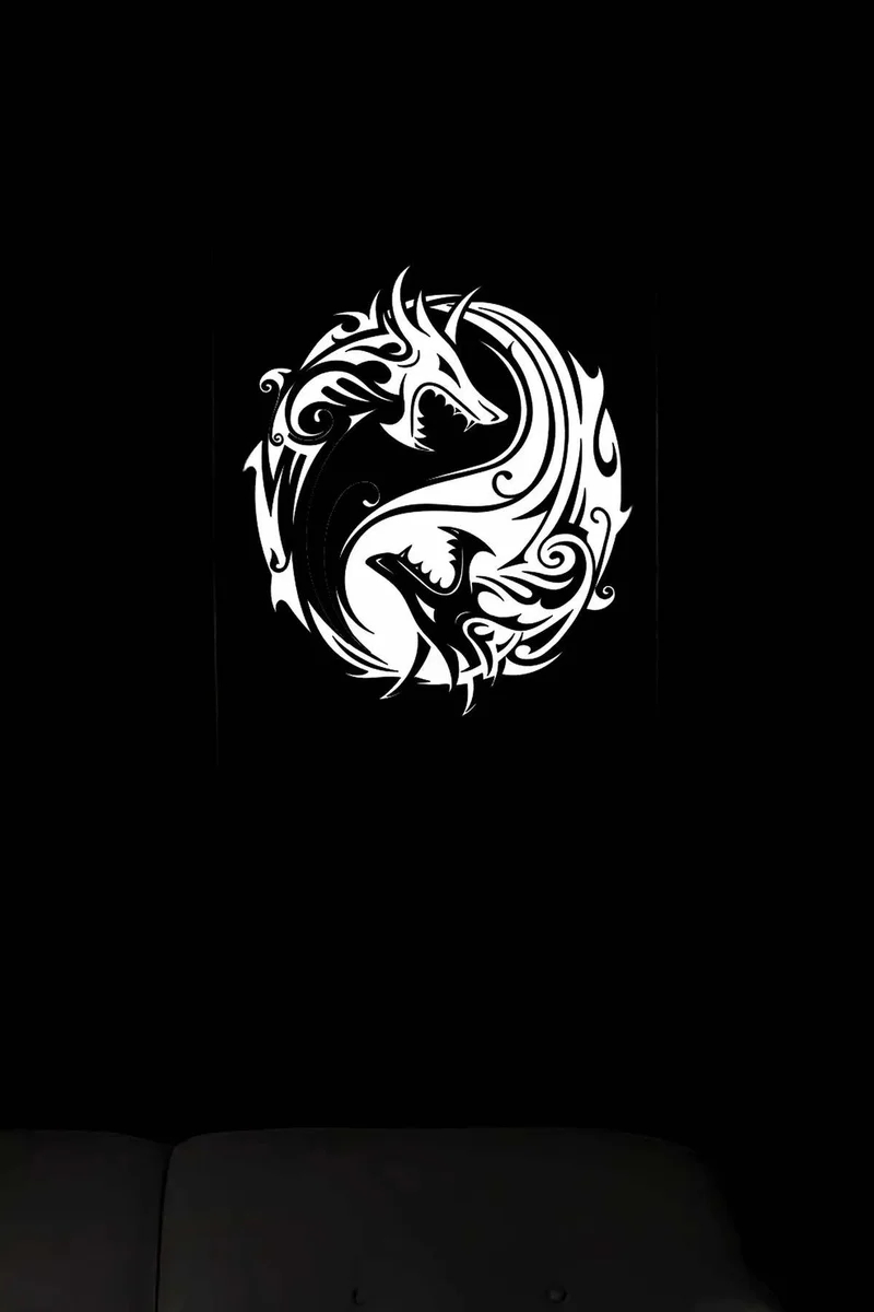 Reflektörlü Yin Yang Ejderha Sembolü Deri Duvar Tablosu