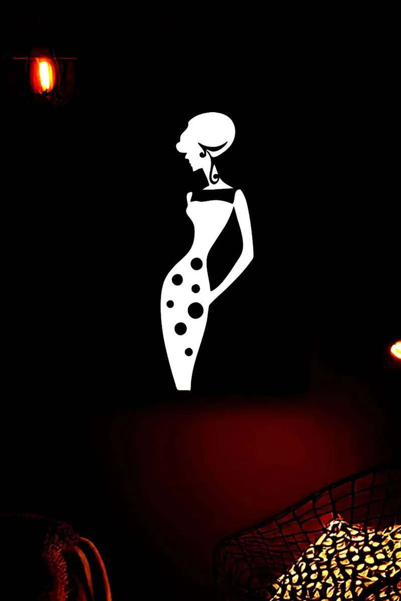 Retro Stil Reflektörlü Puantiyeli Kadın Silüeti Deri Duvar Tablosu