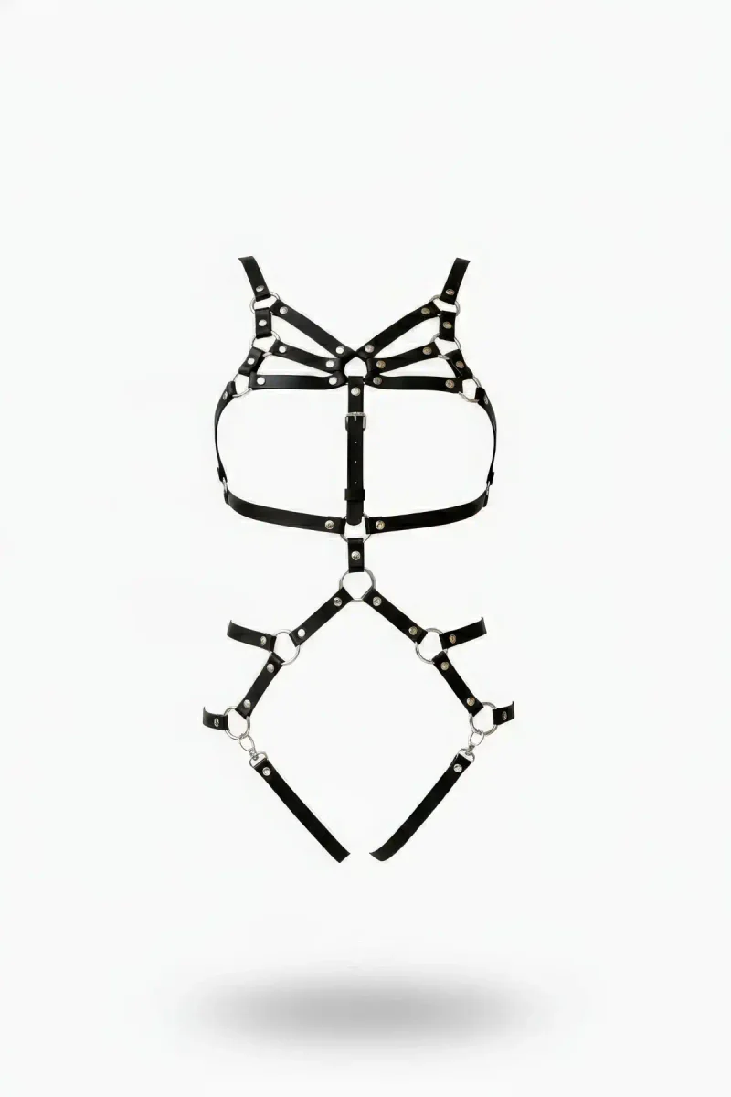 Ana Sayfa/Kadın Harness/Body Harness/Siyah Body Harness Deri Çoklu Kemer Tokalı Vücut Aksesuarı - APFT724