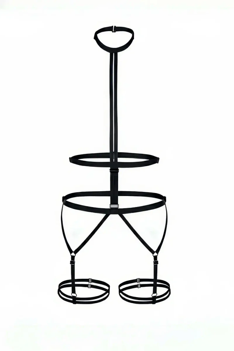 Ana Sayfa/Kadın Harness/Body Harness/Siyah Body Harness Kadın Yüksek Boyunlu Jartiyer Detaylı - APFT39