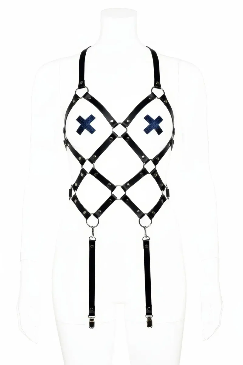 Ana Sayfa/Kadın Harness/Body Harness/Siyah Body Harness Kafes Detaylı Metal Halka Aksesuarlı - APFT368