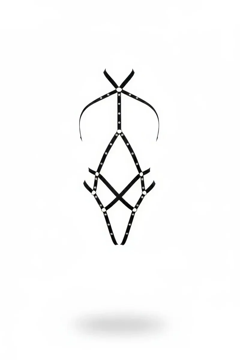 Ana Sayfa/Kadın Harness/Body Harness/Siyah Body Harness Metal Halka Detaylı Vücut Aksesuarı - APFT295