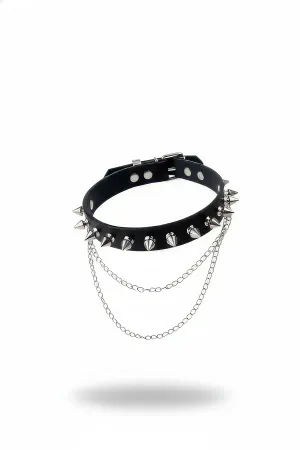Siyah Choker Uzun Zincir Detaylı Gerdanlık - APFT629