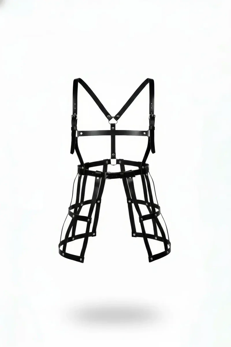 Siyah Etek Deri Kafes Yapılı Metal Detaylı Etek - APFT981