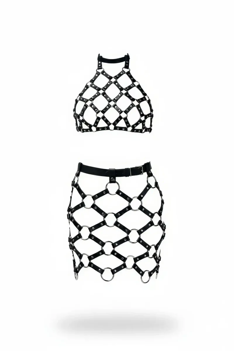 Siyah Etek Suni Deri Etek Metal Halkalı Mini Etek - APFT1289
