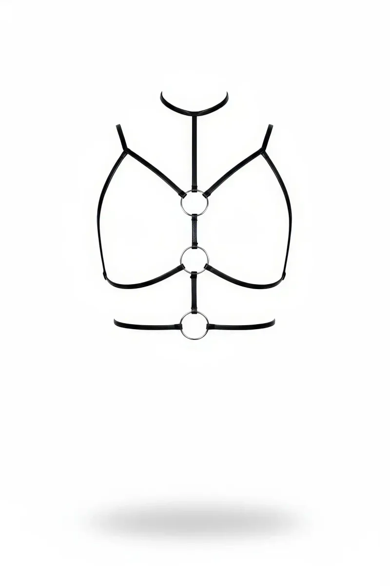 Ana Sayfa/Kadın Harness/Göğüs Harness/Siyah Göğüs Harness Suni Deri Halka Detaylı Boyunluklu - APFT184