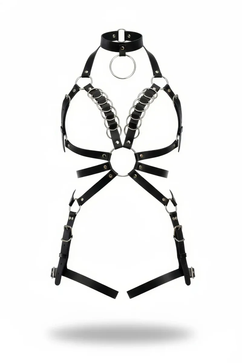 Siyah Harness Takım Deri Metal Halka Detaylı Boyunluklu - APFT781