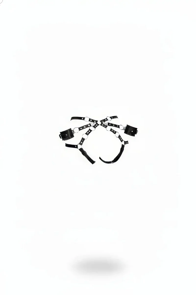 Ana Sayfa/Kadın Harness/Harness Takım/Siyah Harness Takım Deri Metal Halka Detaylı Vücut Aksesuarı - APFT540