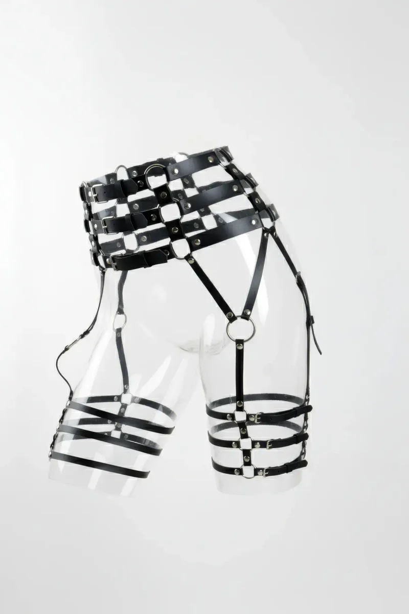 Ana Sayfa/Kadın Harness/Jartiyer Harness/Siyah Jartiyer Harness Yüksek Bel Çoklu Kemerli Metal Tokalı - APFT1051