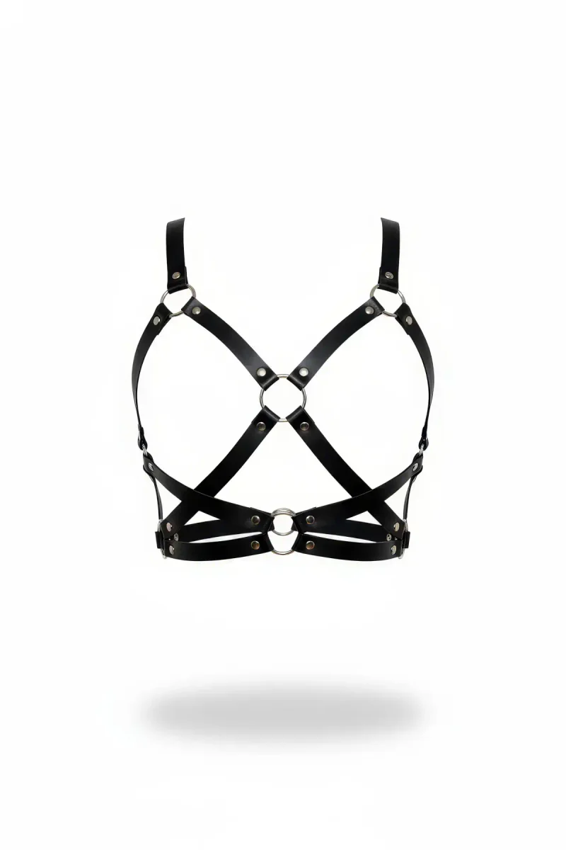Siyah Kadın Kemer Suni Deri Çapraz Halka Detaylı Vücut Aksesuarı - APFT816