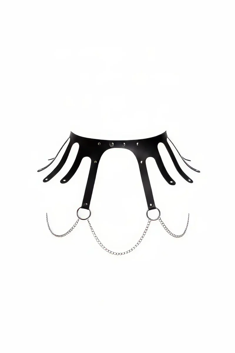 Siyah Kadın Kemer Zincir Detaylı Geniş Deri Bel Aksesuarı - APFT948