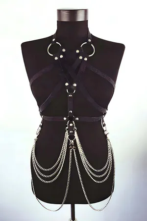 Zincirli Deri Harness Kadın Fantezi Vücut Aksesuarı Özel Koleksiyon