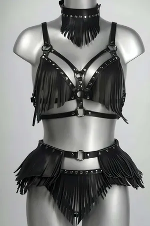 Püskül Detaylı Şık Deri Harness Takım - APFT627