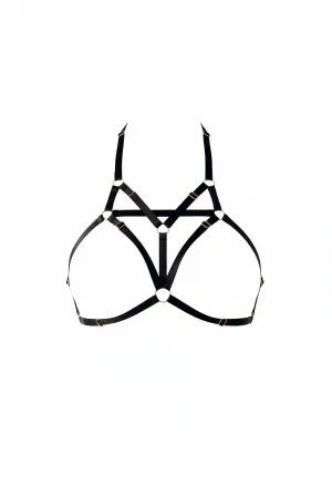 Siyah Göğüs Harness Metal Halka Detaylı Geometrik Bantlı - APFT352