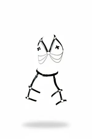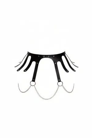 Siyah Harness Takım Zincir Detaylı Deri Vücut Aksesuarı - APFT497