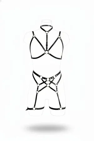 Siyah Harness Takım Metal Halka Detaylı Vücut Aksesuarı - APFT121