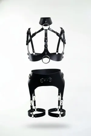 Deri Jartiyer Harness Takım, Deri Sütyen Takım, Kırbaçlı Deri Fantezi Giyim - APFT1363